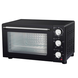 Forno da 24 litri a cottura ventilata con timer da 60 minuti e termostato regolabile fino a 230 C. Programmi di cottura selezionabili. Griglia e vassoio rimovibili. Potenza: 1200W. Dimensioni: 46x38,2x27,3cm - 7kg. Capacita' 24 litri.Caratteristiche:5 Pareti interne in materiale antiaderenteVentilazione e luce internaDoppio vetro di sicurezza e pareti esterne termoisolatiTimer 60 minuti con segnale acusticoTermostato regolabile fino a 230 CResistenze in acciaio Funzioni di cottura: base, grill, combinata Indicatore luminoso di funzionamento Accessori: 1 griglia in acciaio, 1 leccarda in materiale antiaderente, 1 pinza di presa leccarda Alimentazione: 220-240V ~ 50Hz.