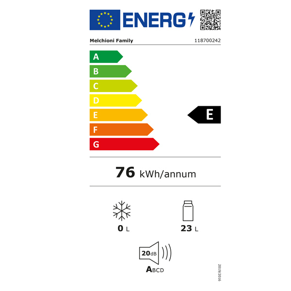 Sistema di raffreddamento termoelettrico a celle di Peltier con tecnologia brevettata HEAT-PIPE. Minifrigo con esclusivo sistema di regolazione a logica fuzzy per un basso consumo energetico. Senza CFC, rispettoso dell'ambiente. Nessuna vibrazione e nessun rumore. Capacita' di raffreddamento (temperatura ambiente 25 gradi C) 5 gradi -18 gradi C. Anta reversibile con maniglia incassata nella parte superiore. Ripiano in plastica regolabile e luce LED interna. Alimentazione: 220-240V / 50-60Hz. Potenza 58W. Classe Energetica (ERP): E. Capacita': 23L. Dimensioni: 38x38x47,5cm. Dimensioni interne: Larghezza 31,2cm Altezza 37,7cm Profondita' 20,7cm.