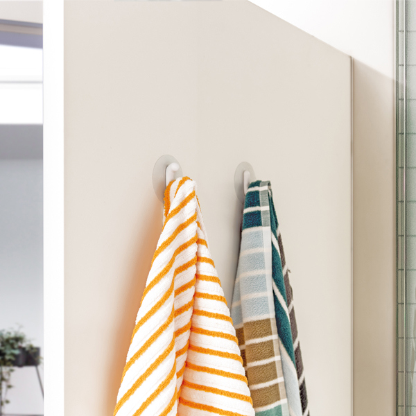 Confezione da 2 ganci adesivi, modello G. Installazione senza perforazione. Portata massima 3 kg.