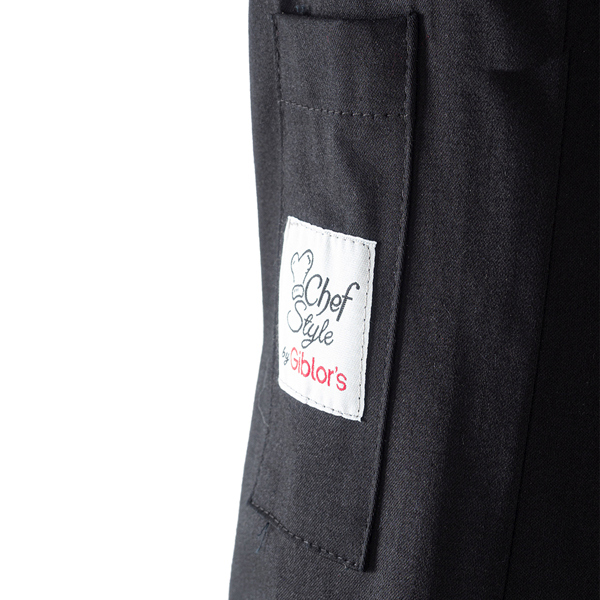 Giacca da cuoco a manica lunga con abbottonatura doppio petto, collo e polsi arrotondati, porta penne sulla manica sinistra. Vestibilita' Slim Fit e bottoni estraibili sulla pettorina davanti. Realizzata in tessuto 65% poliestere 35% cotone nella variante nera. Ha la variante manica corta nella giacca Tommaso. Taglie: XS, S, M, L, XL, XXL, 3XL, 4XL, 5XL.