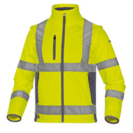 Giacca con chiusura zip antifreddo, maniche staccabili e 5 tasche. Fondo maniche con finitura sbieco e parte bassa regolabile tramite elastico. Tessuto 'Softshell' traspirante, idrorepellente, malleabile, leggero, morbido, 100% poliestere 3 strati laminati. Strisce retro-riflettenti cucite. Alta visibilita': Classe 3 - Colore argento - Bande a bretella e parallele. Categoria DPI: 2. Certificazione CE. Conformita' alle norme EN ISO 13688:2013 e EN ISO 20471:2013 /A1:2016.