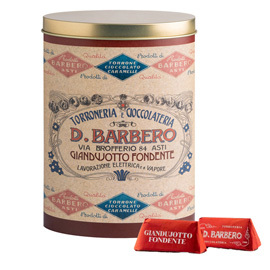 Gianduiotti in elegante scatole di metallo: gusto fondente con cioccolato fondente e cacao per un gusto intenso e aromatico. Mantenere in luogo fresco e asciutto. Temperatura consigliata: 15-18 gradi C.