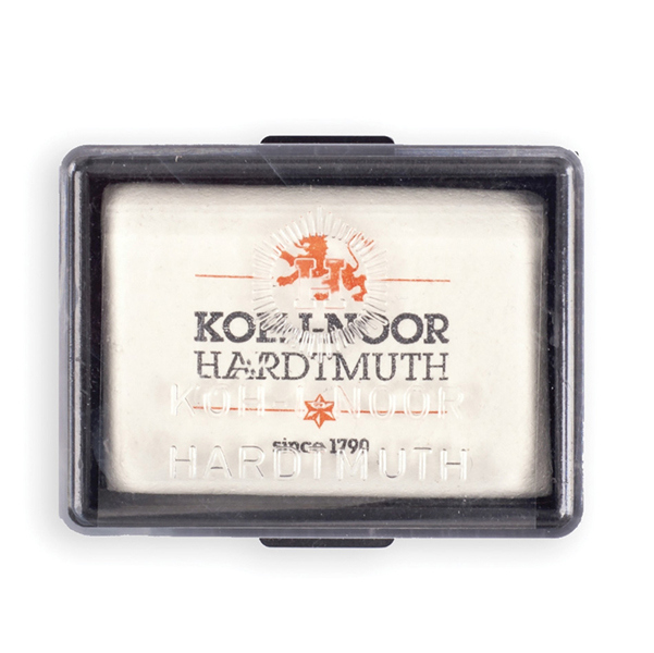 Gomma pane soft bianca in scatoletta singola. Realizzata in cacciu' adatta per pastelli e carboncini.