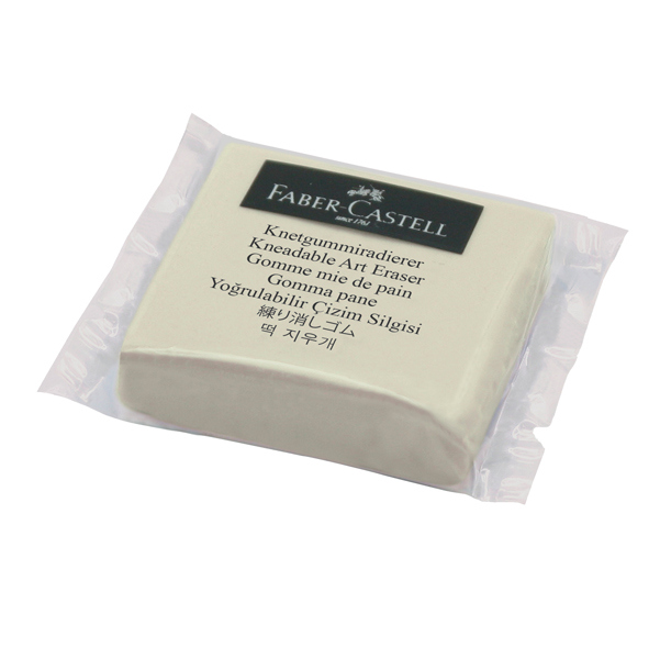 Gomma pane bianca quadrata. In caucciu' malleabile ed assorbente. Adatta per pastelli e carboncini. Dimensioni 36x36x10mm.