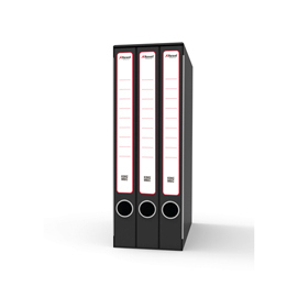 Sistema di archiviazione king mec composto da un'unica custodia con 3 cartelline a 2 anelli dorso 4cm. Formato utile 23x32cm (lxh). Struttura in robusto cartone grigio rivestito con carta goffrata nera antimpronta. Custodia in tinta con parabordi. Anello di estrazione in acciaio. Etichetta adesiva gia' posizionata sul dorso. Ideale per raggruppare fogli perforati. Dimensioni esterne 14x25x35cm.