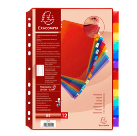 Marchio exacompta. Sono ideali per l'organizzazione dei tuoi documenti personali e professionali. Materiale polipropilene. Spessore 20/100e. Dimensione prodotto 22,5x29,7cm. Formato utile A4. Tipo di prodotto intercalari. Tipo neutro. Tipologia intercalari neutri. Tasti neutri. Formato A4 (21x29,7cm). Numero tasti 12. Colore trasparente. Materiale pp.