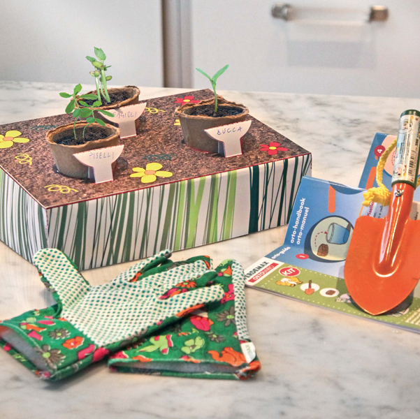 Kit ideato per imparare ad amare e a coltivare l'orto sin da piccoli. Strumento didattico, facile e divertente. ORTOBIMBO insegnera' ai piu' piccoli i valori della natura legati al concetto di un'alimentazione sana e biologica. Eta' di utilizzo consigliata da 5 a 10 anni. Comprende: paletta, vasetti, guanti, pastiglie di cocco, ortoguida e semi. Dimensioni scatola:22x27x7cm.