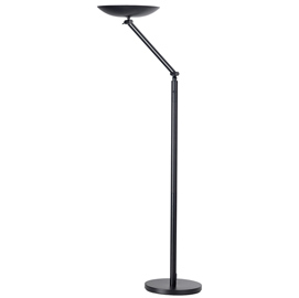 Piantane essenziali e funzionali; lo smalto riflettente all'interno della calotta assicura un'eccellente illuminazione indiretta. Braccio articolato per consentire lo spostamento della calotta al di fuori dell'asse della lampada. Base zavorrata da 5kg per la massima stabilita'. Diffusore paralume orientabile per dirigere il fascio di luce in base alle proprie esigenze. Dimmer sul fusto. Diametro 34cm e altezza 180cm. Led 23W integrato (non sostituibile). Lunghezza cavo 2 metri. Classe energetica: D. Made in China. 23 W - nero.