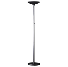 Piantane essenziali e funzionali; lo smalto riflettente all'interno della calotta assicura un'eccellente illuminazione indiretta. Base zavorrata per la massima stabilita'. Dimmer sul fusto. Diametro 34cm e altezza 180cm. Led 23W integrato. Classe energetica: D. Made in China.