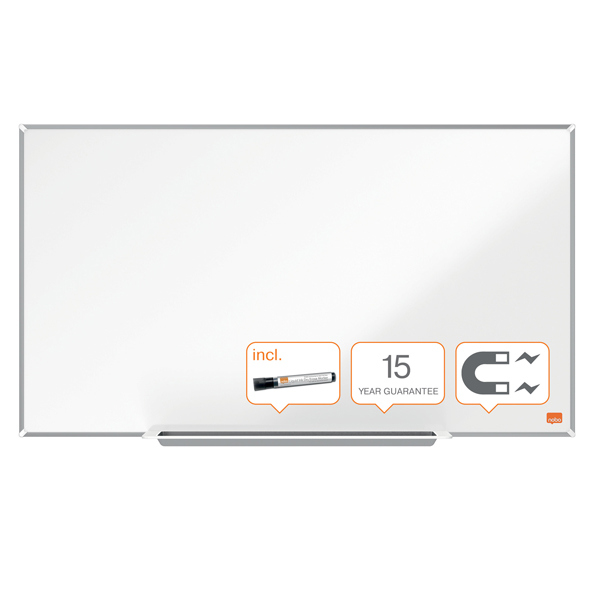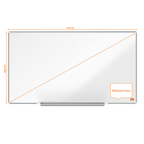 Il formato widescreen offre una superficie di scrittura piu' accessibile ed estesa rispetto alle lavagne bianche tradizionali, in cui lo spazio in alto e in basso solitamente non vengono utilizzati. Dotata di una cornice contemporanea, sottile (6mm) e discreta che massimizza lo spazio di scrittura sulla lavagna. Il sistema InvisaMount semplifica l'installazione e i punti di fissaggio sono ben nascosti dietro la lavagna. La superficie magnetica in acciaio offre una buona cancellabilita' per un uso moderato. L'ampio portapennarelli e' fissato al bordo inferiore della lavagna in modo da non portare via spazio alla superficie. Pennarello Nobo cancellabile a secco in dotazione.