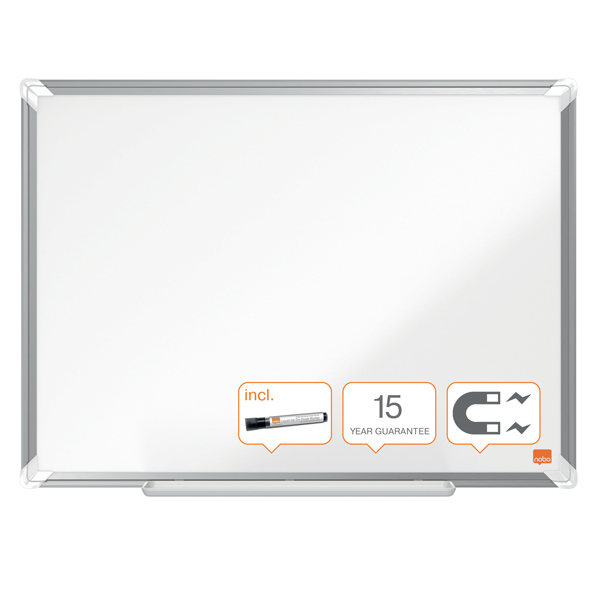Lavagna bianca in acciaio laccato con superficie magnetica. Adatta per usi moderati. Buona capacita' di cancellatura e resistenza a macchie di inchiostro, segni di pennarello, graffi e ammaccature. Dotata di portapennarelli rimovibile. Garanzia di 15 anni. . .
