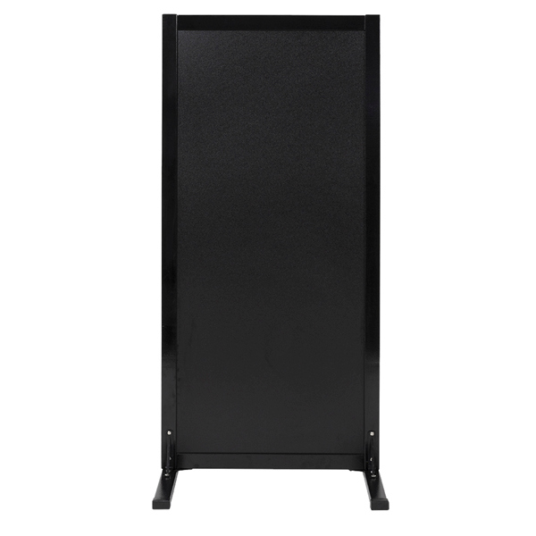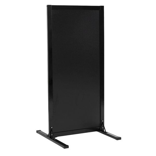 Lavagna Stand da terra Woody con cornice in legno laccato. Superficie resistente ai raggi UV e ai graffi. Base in acciaio inossidabile e piedini gommati. Dimensione 117x56x60cm. Colore nero.