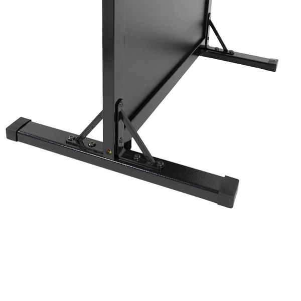 Lavagna Stand da terra Woody con cornice in legno laccato. Superficie resistente ai raggi UV e ai graffi. Base in acciaio inossidabile e piedini gommati. Dimensione 78x56x40cm. Colore nero.