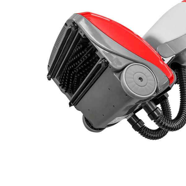 Lavasciuga ad acqua calda (90 gradi C) con spazzola rotante che rimuove lo sporco in profondita' senza essere aggressiva e senza lasciare aloni. Tre semplici comandi per spazzola, lavaggio e asciugatura. Serbatoio soluzione e recupero smontabili. Pratico avvolgicavo integrato nella macchina. Due motori indipendenti e asciugatura immediata tramite un potente motore d'aspirazione. 4 flaconi di detergente inclusi. In grado di lavorare per la sua intera lunghezza al di sotto di strutture a 20cm dal pavimento. Accessori in dotazione: spazzola 10cm, lame squeegee, base stazionamento, spazzola morbida 10cm, 4 flaconi detergente. Dimensione: 113x37x37cm.