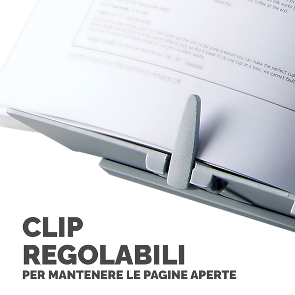 Leggio Book-lift progettato per sorreggere libri e manuali. Utilizzabile con libri e documenti fino al formato A3. Colore silver. Dimensioni: 24,4x29,6x13cm.