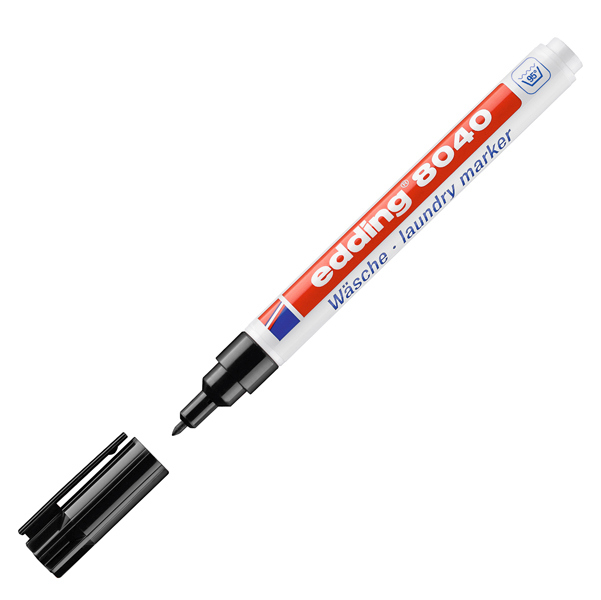 Marcatore per tessuti permanente resistente ai lavaggi ad alte temperature. Inchiostro permanente, inodore a rapida essicazione.Cappuccio con clip: trova sede naturale sul retro del fusto ed e' facilmente riponibile nel taschino di giacche e camicie. Tratto 1mm. Colore: nero.
