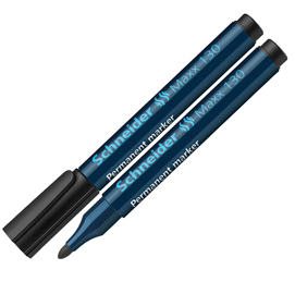 Marcatore permanente per scrittura su cartone, carta, plastica, vetro, metallo, ecc. Inchiostro inodore senza toluene e xilolo. Ad asciugatura rapida, colore intenso. Cappuccio dotato di pratica clip. Punta conica. Tratto 1-3mm. Colore: nero.