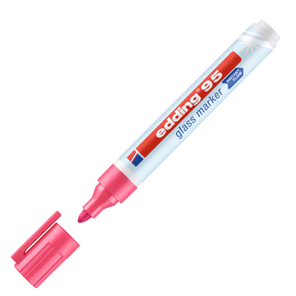 Marcatore pronto all'uso con flusso istantaneo, punta tonda tratto 1,5-3 mm, specifico per superfici in vetro, specchi, lavagne in vetro ma perfetto anche per scrivere su lavagne bianche e per contrassegnare parti di carrozzeria e parabrezza che necessitano di riparazioni. Non occorre attivarlo mediante pressioni sulla punta. Facilmente cancellabile a secco senza residui. Inchiostro coprente e brillante, resistente alla luce. L'astuccio contiene 6 colori: nero, giallo, arancione, rosa, azzurro e bianco.