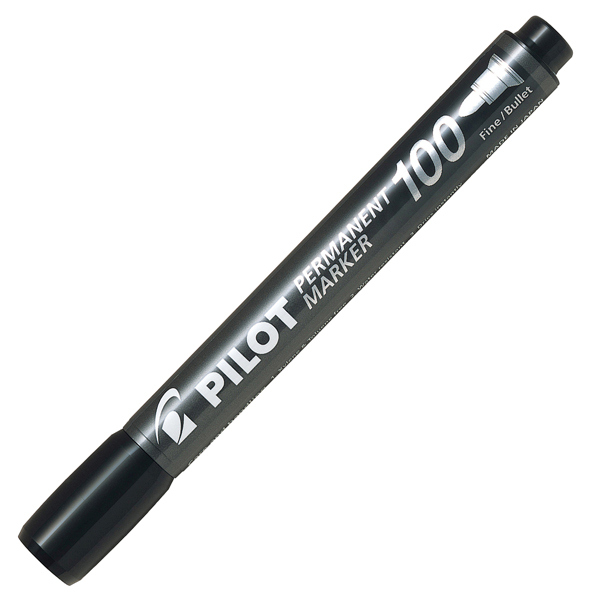 Permanent markers 100 punta tonda. Multisuperficie, monouso. Fusto in plastica. Inchiostro a base d'alcool senza xylene. Punta scalpello in fibra acrilica da 4.5mm. Se lasciato senza cappuccio scrive anche dopo 24h. Colore: nero.