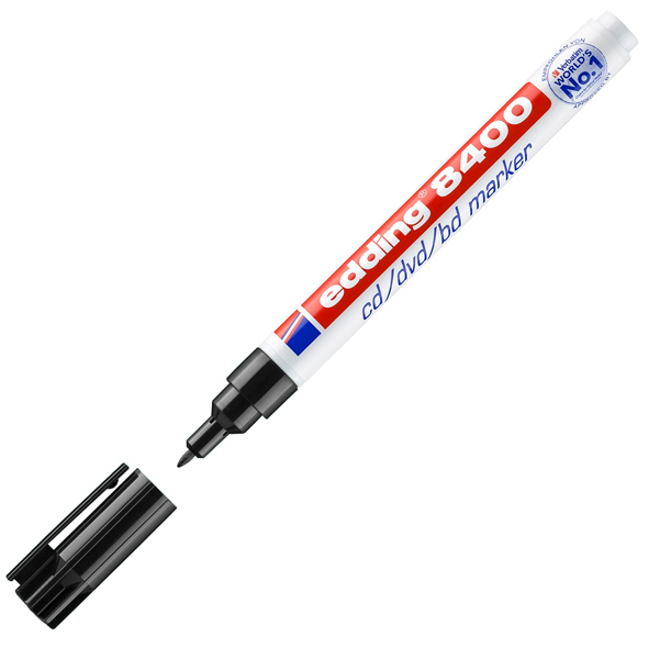 Marcatore specifico per CD e DVD, inclusa la nuova generazione Blu-ray Disc. Punta conica, morbida e flessibile, specificamente studiata per la superficie del CD e DVD e per un elevato confort di scrittura. Ideale anche per carta e come marcatore permanente unversale. Cappuccio con comoda clip. Punta da 1mm. Colore: nero permanente.