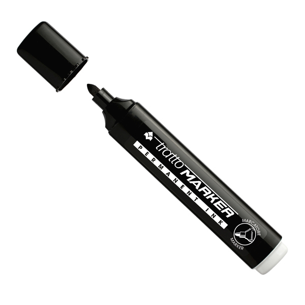 Marcatore permanente a base d'alcool. Scrive su tutte le superfici. Cappuccio ventilato. Made in Italy. Punta 2,5mm-tonda. Colori: nero.
