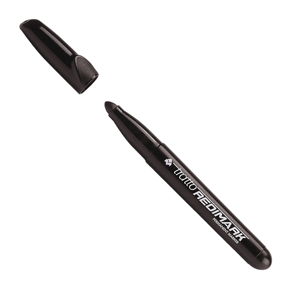 Inchiostro permanente a base d'alcool per tutte le superfici. Design innovativo. Fusto in plastica. Cappuccio brevettato per un'apertura facilitata. Made in Italy. Punta 3,5mm-tonda. Colore: nero.