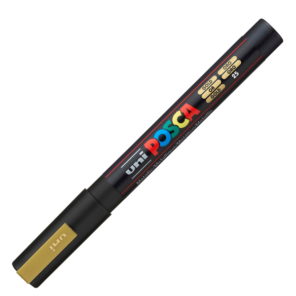Inchiostro pigmentato a base d'acqua dal colore intenso e coprente. Sicuro e inodore. Resistente all'acqua, non passa la carta e non sbiadisce . Lasciato asciugare, il colore puo' essere coperto da un'altra tonalita'. Scrive su: carta, plastica, vetro, metallo, ecopelle e tessuti. Punta 0,9-1,3mm. Colore: oro.