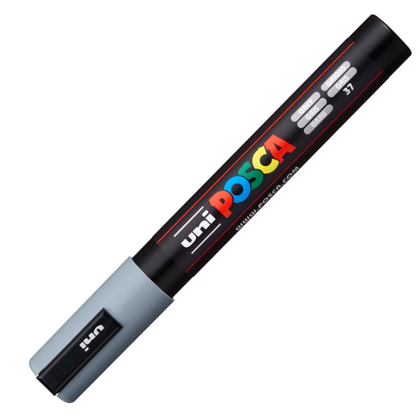 Inchiostro pigmentato a base d'acqua dal colore intenso e coprente. Sicuro e inodore. Resistente all'acqua, non passa la carta e non sbiadisce . Lasciato asciugare, il colore puo' essere coperto da un'altra tonalita'. Scrive su: carta, plastica, vetro, metallo, ecopelle e tessuti. Punta 1,8-2,5mm. Colore: grigio.