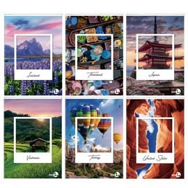 Maxiquaderno con copertina in cartoncino da 200gr con verniciatura a U.V. Carta da 80gr, 40+2 fogli. Rilegatura con punto metallico.