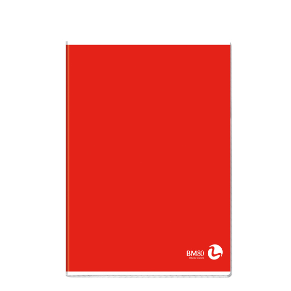 Maxiquaderno con copertina in cartoncino da 250gr con verniciatura U.V. Carta da 80gr 40+2 fogli. Rilegatura con punto metallico.