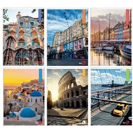 Maxiquaderno con copertina in cartoncino da 200gr con verniciatura a U.V. Carta da 80gr, 40+2 fogli. Rilegatura con punto metallico.