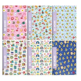 Maxiquaderno con copertina in cartoncino da 250gr con verniciatura U.V. Carta da 100gr 36+2 fogli. Rilegatura con punto metallico.