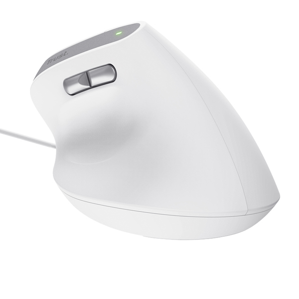 Forma verticale ergonomica con angolo ottimale di 57 gradi e comodo appoggiadito per ridurre la tensione del braccio e del polso - Design ecosostenibile, realizzato all'50% con plastica riciclata - La velocita' del cursore regolabile da 800 a 2400 DPI garantisce un movimento preciso e accurato - Due pulsanti laterali di facile accesso azionabili con il pollice per spostarsi avanti e indietro - Il lungo cavo USB di 150 cm offre liberta' di movimento sulla scrivania.