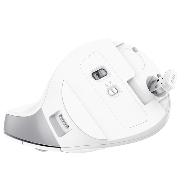 Forma verticale ergonomica con angolo ottimale di 57 gradi e comodo appoggiadito per ridurre la tensione del braccio e del polso Design ecosostenibile, realizzato all'50% con plastica riciclata Batteria integrata ricaricabile e cavo di ricarica USB in dotazione Il mouse puo' essere utilizzato fino a 3 mesi con una carica completa, oppure puo' essere caricato per 5 minuti e funzionare per 8 ore. Collegamento senza fili tramite il microricevitore USB 2,4G, che puo' essere facilmente riposto all'interno del mouse. La velocita' del cursore regolabile da 800 a 2400 DPI garantisce un movimento preciso e accurato Due pulsanti laterali di facile accesso azionabili con il pollice per spostarsi avanti e indietro Durata della batteria basata sull'utilizzo medio; in condizioni diverse puo' variare.