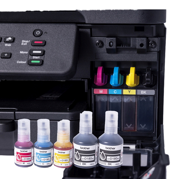 Stampante wireless compatta 3-in-1 con serbatoio d'inchiostro. Stampa di piu' a costi ridotti con i flaconi di inchiostro ad altissima capacita' e i serbatoi di inchiostro a riempimento semplice, che permettono di ridurre i costi di stampa. Che tu stia lavorando in ufficio, in salotto o in cucina, potrai sempre usufruire della connettivita' veloce per stampare rapidamente e senza problemi. Stampa fino a 16 immagini al minuto e stampa fronte-retro automatica. Garanzia 3 anni on-center. Display a colori da 4,5 cm (1,8''), per un'interfaccia chiara e facile da usare. Wi-Fi 5 GHz e USB e stampa direttamente da o scansiona su PC e app mobile. Vassoio di alimentazione carta da 150 fogli, slot di alimentazione manuale, alimentatore automatico di documenti (ADF) da 20 fogli. Sono inclusi i flaconi di inchiostro da 15000 pagine per il nero (2 x 7500), e 5000 pagine per ogni colore.