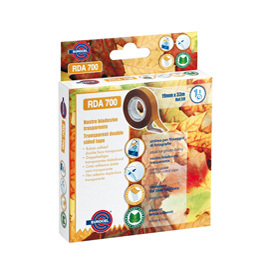Nastro biadesivo realizzato per il fissaggio di fotografie, campionari, oggetti leggeri, piccoli lavori e laminazioni/accoppiamenti di materiali. Facile da usare. Alta appiccicosita' ed adesivita' per entrambi i lati. Alto allungamento. Performante su differenti materiali e superfici. Lacerabile a mano (secondo il formato prodotto).Adesivo: gomma sintetica e resine, ''solvent free''.Adesivita' lato esterno: 20 N/25mm.Adesivita' lato interno: 30 N/25mm.Carico/resistenza alla rottura: 100 N/25mm.Colore del nastro: trasparente.Resistenza all'allungamento: 140 %.Resistenza alla temperatura: 60 C. Tipo supporto: film di BOPP da 28 micm.Spessore totale: 0,098mm. Tipo e colore del liner: carta avana bisiliconata.