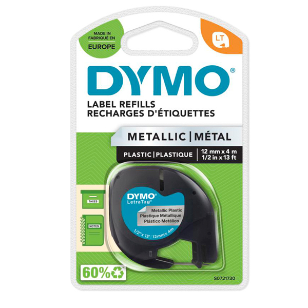 Nastro metallizzato per stampa a trasferimento termico. Compatibile con Dymo Letratag.