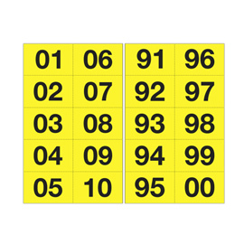Etichette adesive. Formato foglio: 98 x 200mm. Formato etichetta: 44 x 34mm. Altezza carattere: 24mm. Colore: scritta nera su foglio giallo.