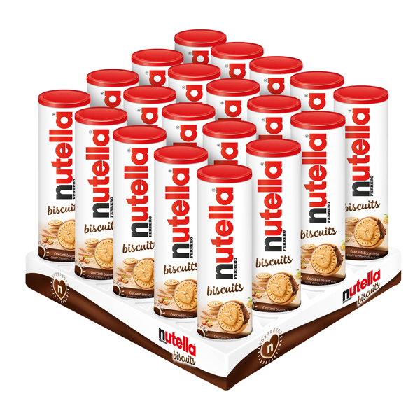 Nutella Biscuits, croccanti biscotti con farina di frumento con cuore cremoso di Nutella, in pratico tubo da 166gr.