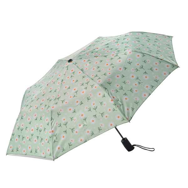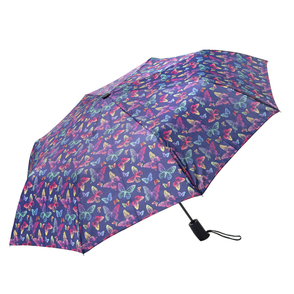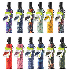 Ombrello da viaggio con apertura automatica. 8 stecche in metallo con sistema antivento. 12 fantasie assortite.