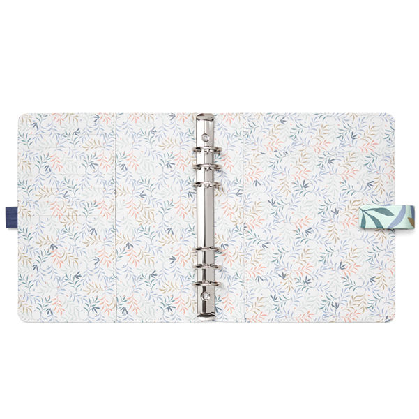 Organiser della nuova collezione Botanical di design accativante ed interni fantasia, ispirato ai colori della natura. Copertina liscia a motivi Botanical, chiusura con cinturino. Dotato di anello portapenna e tasche interne. Contiene agenda settimanale su 2 pagine multilingua. Carta da 80gr, adatta a penne stilografiche.
