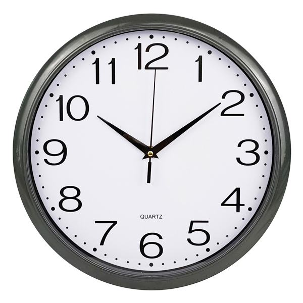 Design classico con cornice grigia. Diametro 30,5cm. Alimentata da 1 pila stilo AA (non inclusa).