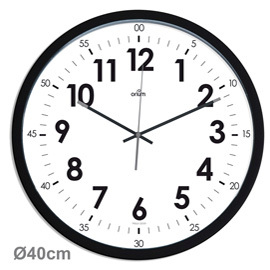 Orologio dal quadrante bianco con marcatura dei minuti diametro 40cm. Struttura antiurto in ABS. Protezione del quadrante in polipropilene: molto sicuro, non va in frantumi come il vetro. Perfetto per ospedali o scuole. Movimento al quarzo silenzioso. Garanzia 3 anni.