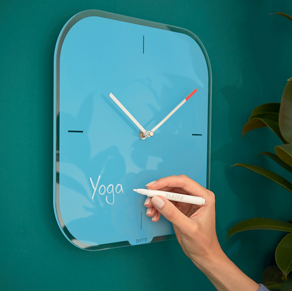 Orologio da parete silenzioso ideale per uffici, sale lettura, camere da letto. Vetro temperato di sicurezza da 4mm. Design minimalista che permette di scrivere appunti o disegnare sul quadrante con il pennarello incluso.