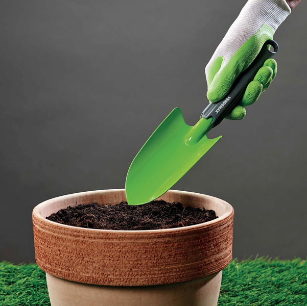 Gamma di piccoli attrezzi da giardino robusti e leggeri, di lunga durata, verniciati a polveri epossidiche anti ruggine. Linea classica di colore verde acido si distingue per una impugnatura antiscivolo.