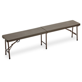 Panca HORECA rettangolare pieghevole di colore noce. Struttura in acciaio verniciato con vernici epossidiche color grigio e top in HDPE di colore noce pieghevole. Dimensioni: H44 x P30 x L183cm - 8,6kg.Articolo destinato ad esclusivo uso domestico. Non adatto ad uso pubblico.