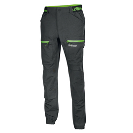 Pantaloni estivi multitasca in tessuto elasticizzato U-4 way stretch con inserti elasticizzati in vita e sul fondo per garantire la liberta' di movimento. Idrorepellenti ad asciugatura rapida e altamente traspiranti. Chiusura centrale con zip e bottone gommato antigraffio. Battitacco antiusura e carre' posteriore accentuato per una miglior protezione della zona lombare. Due ampie tasche anteriori, due tasche multifunzionali frontali con chiusura zip, due tasche posteriori di cui una chiusa con cerniera e una con velcro, tasca porta-metro, fettuccia porta-martello e tasche porta-ginocchiera. La persenza del nastro reflex sul passante tubolare posteriore assicura una maggiore visibilita'. Su ordinazione tutte le taglie da XS a 5XL.