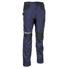 Pantaloni Skiathos Ampie tasche anteriori, cavallo e parte posteriore in tessuto elasticizzato per massima liberta' di movimento, doppia tasca posteriore di cui una con pattina chiuse con velcro, elastico interno in vita, inserti reflex, inserto sopra il ginocchio in costina stretch per flessibilita' di movimento, passante portamartello, taglio ergonomico di gambe e ginocchia, tasca laterale con doppia apertura (chiusa con velcro e con zip), tasca portametro. COMPOSIZIONE: 60% cotone - 40% poliestere / Tessuto elasticizzato: 60% cotone - 37% poliestere - 3% elastan. GRAMMATURA: 245 g/m2.