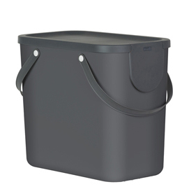 Il sistema di riciclaggio orientato al design. Colori piacevoli e freschi e forma perfettamente pensata. Modulare, impilabile e salvaspazio. 6 adesivi per il secchio grande aiutano a separare i rifiuti. Il piccolo secchio e' ideale per i rifiuti organici, ma anche per capsule di caffe', batterie, ecc. Il coperchio rimane aperto grazie alla cerniera apri/chiudi. Il piccolo secchio si adatta perfettamente a 90 gradi sul secchio grande. 400 x 235 x 340 mm - 25Lt.
