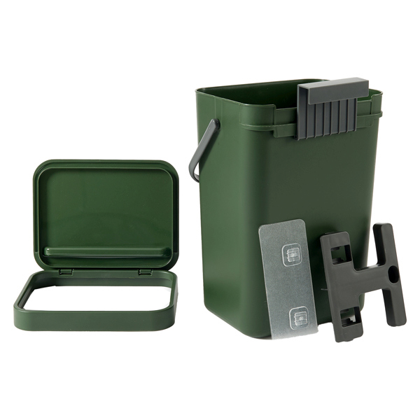 Pattumiera per il piano cottura che rende facile la differenziata! Pratica, leggera, mobile, si aggancia agli sportelli, ai cassetti e alle superfici della cucina. Dimensioni: cm. 24 x 19 x h. 35,5.